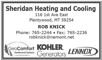 Public Notices Posted on November 12, 2025 Posted on November 12, 2025 Sheridan Heating and Cooling 116 1st Ave East Plentywood, MT 59254 ROB KNICK Phone: 765-2244 • Fax: 765-2236 robknick@nemont.net Sheridan Heating and Cooling 116 1st Ave East Plentywood, MT 59254 ROB KNICK Phone: 765-2244 • Fax: 765-2236 robknick@nemont.net