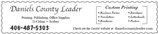 News Posted on November 26, 2025 Posted on November 26, 2025 Custom Printing Daniels County Leader • Business Forms • Envelopes • Newsletters • Letterheads • Brochures • Posters Printing, Publishing, Office Supplies 214 Main • Scobey 406-487-5303 Check out the Leader website at: danielscountyleader.com Custom Printing Daniels County Leader • Business Forms • Envelopes • Newsletters • Letterheads • Brochures • Posters Printing, Publishing, Office Supplies 214 Main • Scobey 406-487-5303 Check out the Leader website at: danielscountyleader.com