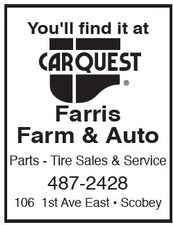 You'll find it at Farris Farm & Auto Parts - Tire Sales & Service 487-2428 106 1st Ave East • Scobey You'll find it at Farris Farm & Auto Parts - Tire Sales & Service 487-2428 106 1st Ave East • Scobey