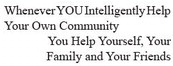WheneverYOU Intelligently Help Your Own Community You Help Yourself, Your Family and Your Friends WheneverYOU Intelligently Help Your Own Community You Help Yourself, Your Family and Your Friends