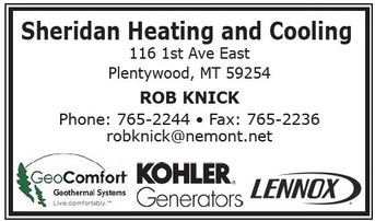 Sports Posted on January 21, 2026 Posted on January 21, 2026 Sheridan Heating and Cooling 116 1st Ave East Plentywood, MT 59254 ROB KNICK Phone: 765-2244 • Fax: 765-2236 robknick@nemont.net Sheridan Heating and Cooling 116 1st Ave East Plentywood, MT 59254 ROB KNICK Phone: 765-2244 • Fax: 765-2236 robknick@nemont.net