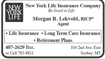 New York Life Insurance Company Be Good at Life Morgan R. Lekvold, RICP Agent • Life Insurance • Long Term Care Insurance • Retirement Plans 487-2629 Bus. 104 2nd Ave. East or Cell 783-8811 Scobey, MT New York Life Insurance Company Be Good at Life Morgan R. Lekvold, RICP Agent • Life Insurance • Long Term Care Insurance • Retirement Plans 487-2629 Bus. 104 2nd Ave. East or Cell 783-8811 Scobey, MT