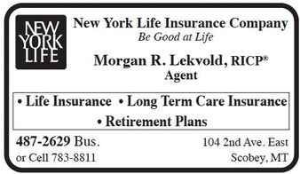 New York Life Insurance Company Be Good at Life Morgan R. Lekvold, RICP Agent • Life Insurance • Long Term Care Insurance • Retirement Plans 487-2629 Bus. 104 2nd Ave. East or Cell 783-8811 Scobey, MT New York Life Insurance Company Be Good at Life Morgan R. Lekvold, RICP Agent • Life Insurance • Long Term Care Insurance • Retirement Plans 487-2629 Bus. 104 2nd Ave. East or Cell 783-8811 Scobey, MT