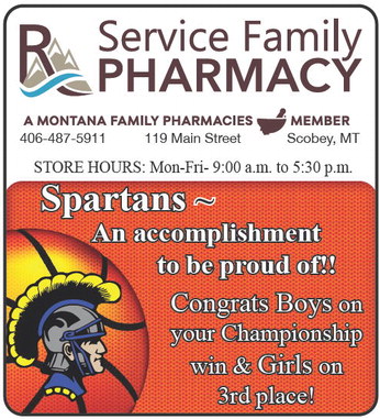 406-487-5911 119 Main Street Scobey, MT STORE HOURS: Mon-Fri- 9:00 a.m. to 5:30 p.m. Spartans ~ An accomplishment to be proud of!! Congrats Boys on your Championship win & Girls on 3rd place! 406-487-5911 119 Main Street Scobey, MT STORE HOURS: Mon-Fri- 9:00 a.m. to 5:30 p.m. Spartans ~ An accomplishment to be proud of!! Congrats Boys on your Championship win & Girls on 3rd place!