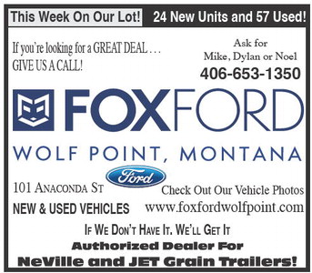 This Week On Our Lot! 24 New Units and 57 Used! Ask for Mike, Dylan or Noel If you’re looking for a GREAT DEAL . . . GIVE US A CALL! 406-653-1350 101 AnAcondA St Check Out Our Vehicle Photos NEW & USED VEHICLES www.foxfordwolfpoint.com If We Don’t Have It. We’ll Get I t This Week On Our Lot! 24 New Units and 57 Used! Ask for Mike, Dylan or Noel If you’re looking for a GREAT DEAL . . . GIVE US A CALL! 406-653-1350 101 AnAcondA St Check Out Our Vehicle Photos NEW & USED VEHICLES www.foxfordwolfpoint.com If We Don’t Have It. We’ll Get I t