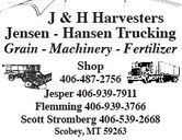 Classifieds Posted on March 25, 2026 Posted on March 25, 2026 J & H Harvesters Jensen - Hansen Trucking Grain - Machinery - Fertilizer Shop 406-487-2756 Jesper 406-939-7911 Flemming 406-939-3766 Scott Stromberg 406-539-2668 Scobey, MT 59263 J & H Harvesters Jensen - Hansen Trucking Grain - Machinery - Fertilizer Shop 406-487-2756 Jesper 406-939-7911 Flemming 406-939-3766 Scott Stromberg 406-539-2668 Scobey, MT 59263
