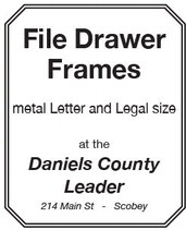 File Drawer Frames metal Letter and Legal size at the Daniels County Leader 214 Main St - Scobey File Drawer Frames metal Letter and Legal size at the Daniels County Leader 214 Main St - Scobey