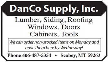 DanCo Supply, Inc. Lumber, Siding, Roofing Windows, Doors Cabinets, Tools Phone 406-487-5354 • Scobey, MT 59263 We can order non-stocked items on Monday and have them here by Wednesday!